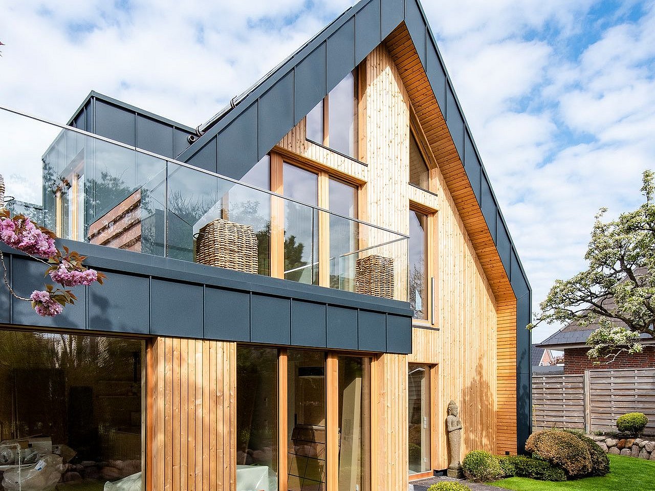 Bei der Planung des Holzhauses standen die Lebensdauer und Ökobilanz der verwendeten Materialien im Mittelpunkt. Ein Rückbaukonzept stellt sicher, dass das Haus am Ende seines Lebenszyklus dem natürlichen Kreislauf zugeführt werden kann. Es wurde Wert auf besonders nachhaltige Baustoffe gelegt. Von Massivholz über demontierbare Fassadenplatten und Unterdächer bis hin zu zertifizierten Öko-Materialien im Innenraum. Wiederaufgearbeitete Holzböden verleihen dem Haus einen authentischen Charakter.