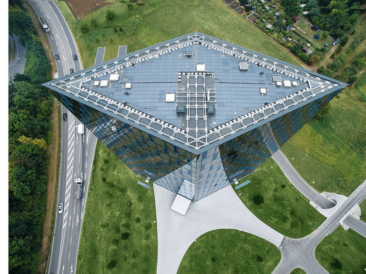 Das rhombusförmige, vollverglaste Festo AutomationCenter mit 16 Hochgeschossen ist Teil des Hauptquartiers des Automatisierungsunternehmens in Esslingen. Der Neubau verbindet hochwertige, ästhetisch anspruchsvolle Architektur mit einem nachhaltigen Energiekonzept.