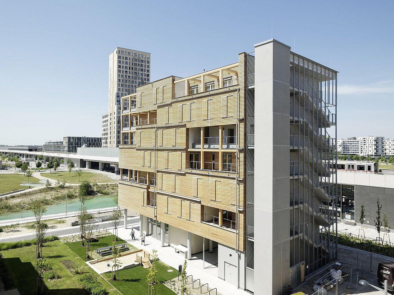 Die Planung erfolgte entsprechend der TQB (Total Quality Building) Zertifizierung der Seestadt Aspern. In der vorgegebenen kurzen Bauzeit entstand ein zeitgemäßer Prototyp in Holzhybridbauweise mit hochqualitativem Wohnraum. Das Gebäude sowie die konstruktiven Bauteile sind in PEFC-zertifiziertem Holz ausgeführt. Um die Kreislauffähigkeit zu erhöhen, wurde das Gebäude soweit möglich in Schichten oder Elementen umgesetzt.