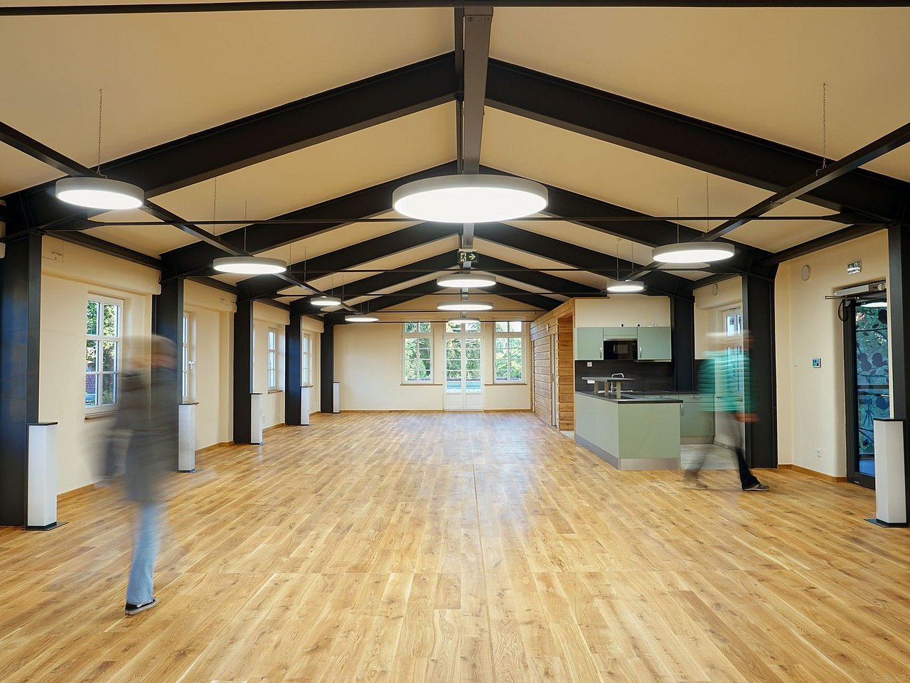 Das Dorfgemeinschaftshaus ist ein wichtiger Bestandteil der Infrastruktur im ländlichen Raum. Es ist soziales und kulturelles Zentrum für die örtliche Bevölkerung und dient darüber hinaus der Förderung des Vereinslebens. Unter dieser Prämisse stand primär der Aspekt der barrierefreien und nachhaltigen Umgestaltung durch Verwendung natürlicher und ressourcenschonender Baustoffe bei geringstmöglichem Wartungsaufwand (Low-Tech) an zentraler Stelle. Im Allgemeinen sollten die Räumlichkeiten, vor allem im Dachraum, besser genutzt werden können, was mit einer Erweiterung der Belichtungsflächen und einer Erhöhung des Drempels einhergehen sollte. Funktionalität gepaart mit einer möglichst umweltschonenden, langlebigen Bauweise lag im Fokus aller Betrachtungen. Obwohl so viel wie möglich am Bestand erhalten bleiben sollte, stand das Thema der barrierefreien Erschließung ebenfalls als zentrale Aufgabe im Raum, die durch den Anbau eines neuen Erschließungstraktes mit integriertem Aufzug gelöst werden sollte.