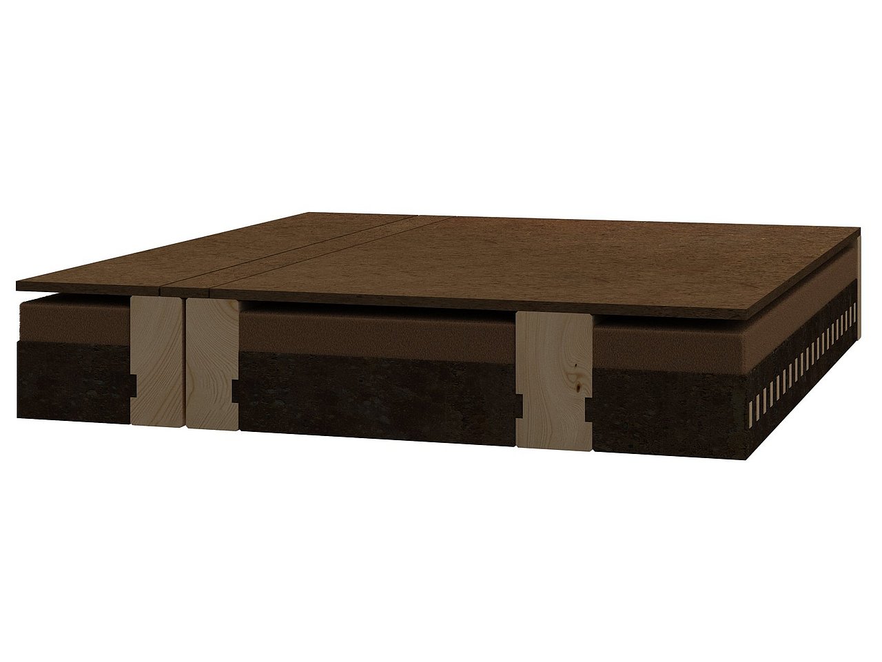 Durch ihre thermische Masse trägt die Holz-Lehm Massivdecke zur passiven Regulierung des Innenraumklimas bei, wodurch der Energiebedarf für Heizen / Kühlen reduziert werden kann.