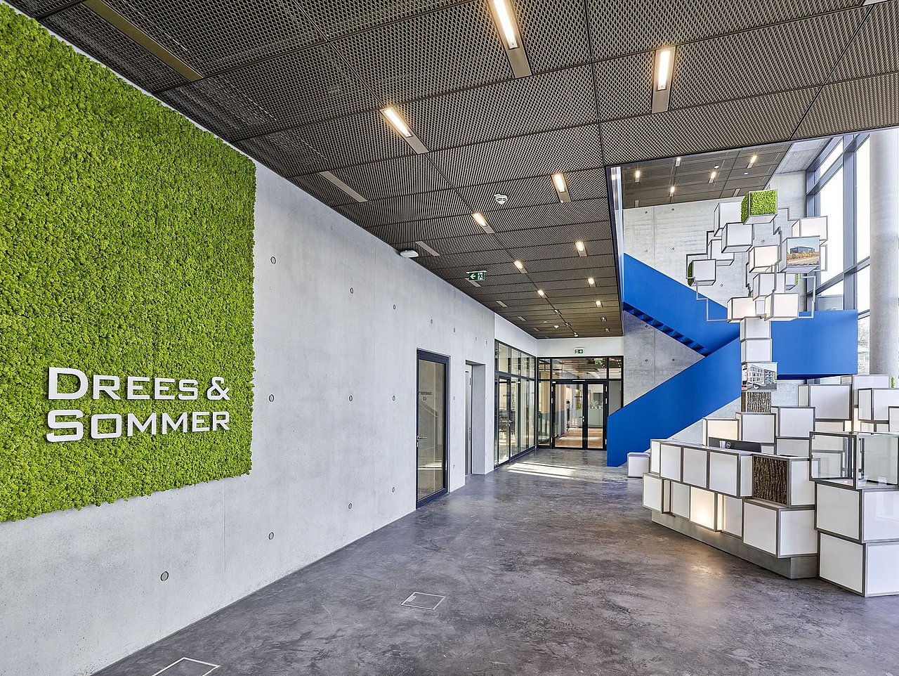 Weitestgehend kreislauffähig bauen und dabei Klimaschutzziele erreichen. Unter anderem diese Ziele wollte das Planungs- und Beratungsunternehmen Drees & Sommer bei seinem Büroneubau OWP12 realisieren (OWP12 steht für die Adresse: Obere Waldplätze 12). Das Gebäude bietet rund 200 Mitarbeitenden Arbeitsplätze und Arbeitsmöglichkeiten, einen flexiblen Konferenzbereich, verschiedene Besprechungsräume, eine Cafeteria, eine große Kantine sowie eine Tiefgarage und überdachte Fahrradstellplätze. Da das Gebäude nicht nur als Arbeitsstätte, sondern auch als Demonstrationsobjekt geplant wurde, hat das Unternehmen dort neue Technologien der Baubranche erprobt, um diese künftig für seine eigenen Kunden nutzbar zu machen.