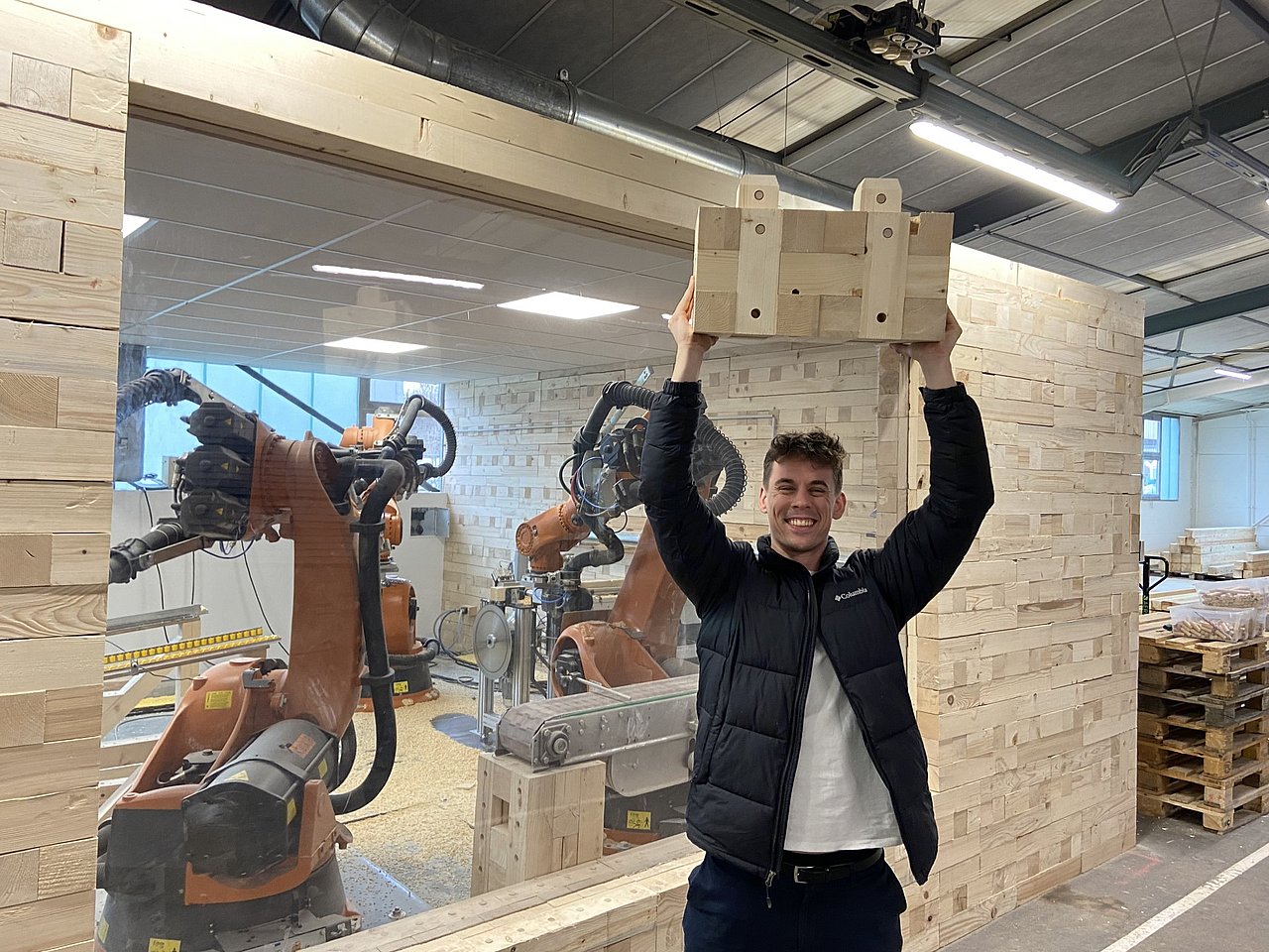 Das kreislauffähige, modulare Holzbausystem wurde aufgrund seiner Innovation bereits mehrfach ausgezeichnet. Dank der monolithischen Holzbauweise trägt das System dazu bei, nicht nur CO2-Emissionen zu vermeiden, sondern CO2 in der gebauten Umwelt einzulagern. Gleichzeitig wird die Forstwirtschaft entlastet, weil für die Holzbausteine ausschließlich Kalamitätsholz und rückgebautes Holz genutzt wird.