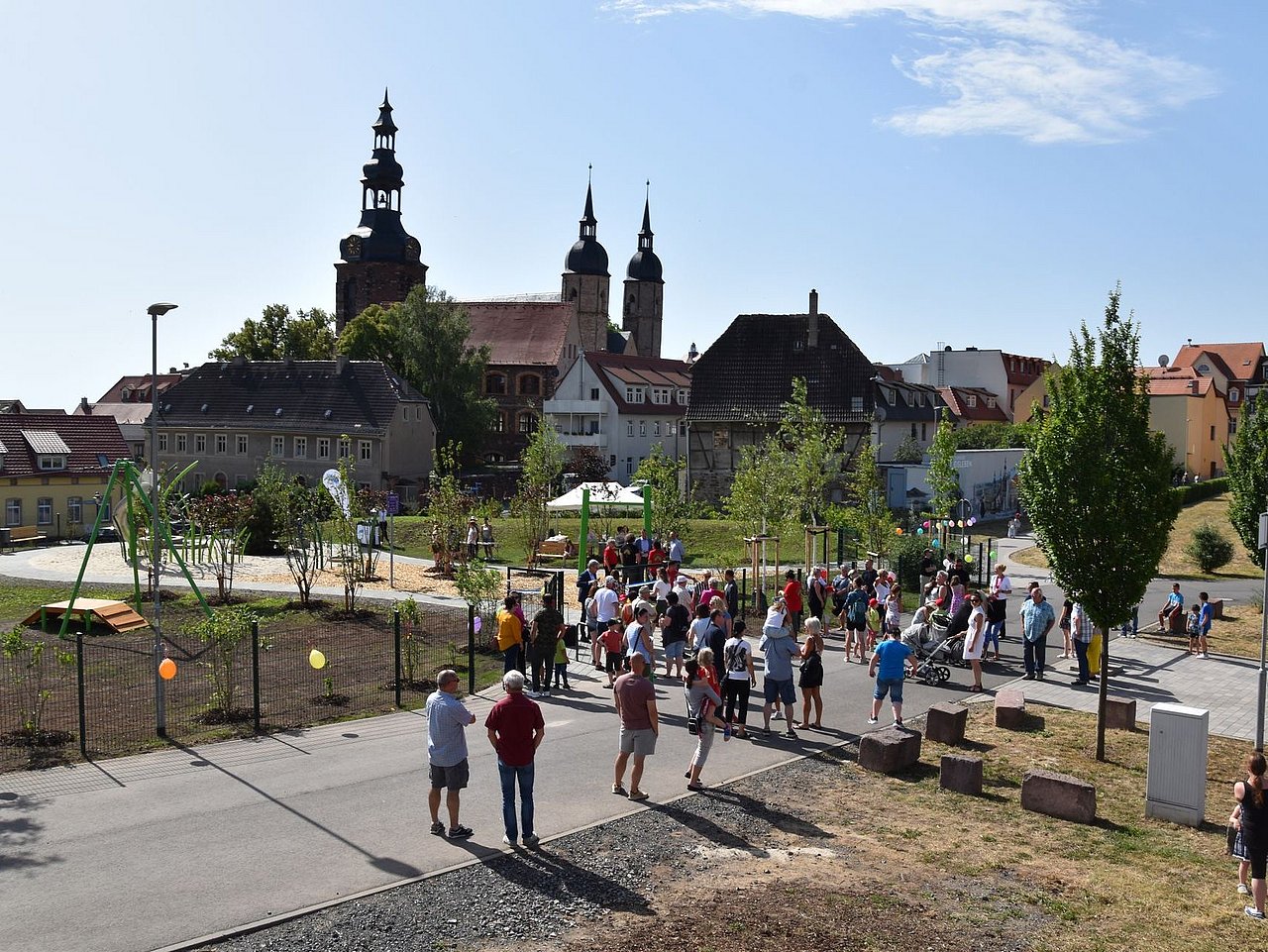 In der Lutherstadt Eisleben wurde eine innerstädtische Brachfläche zu einem multifunktionalen Spiel- und Freizeitplatz umgestaltet. Dabei galt es, Klimaschutz- und Klimaanpassungsmaßnahmen in einem urbanen Bestandsquartier zu integrieren, um eine nachhaltige und klimaresiliente Innenstadt zu fördern. Im Zentrum stand die Umgestaltung einer rund 8.000 m² großen innerstädtischen Fläche hinter der Sangerhäuser Straße in der Altstadt. Dieser zuvor als Parkfläche genutzte Bereich wurde in einen multifunktionalen Platz für die Stadtbewohnerinnen und -bewohner umgewandelt, ergänzt durch großflächige Begrünungen, die das Stadtklima signifikant verbessern sollen.