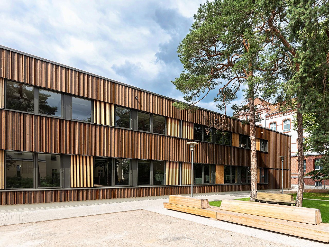 Für die Konrad-Zuse-Schule, eine Berufsschule mit sonderpädagogischem Schwerpunkt, entstand in Berlin ein neues Werkstattgebäude in Holzbauweise, das den heutigen Ausbildungsanforderungen gerecht wird.