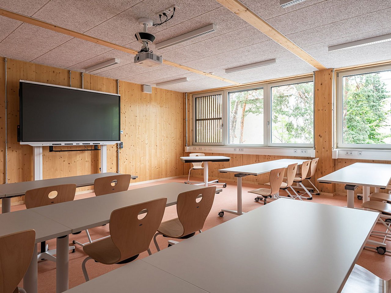 Während des Bauprozesses musste auch für den laufenden Schulbetrieb Sorge getragen werden. Jener profitierte von dem hohen Grad an Vorfertigung und die dadurch geringeren Lärmemissionen.