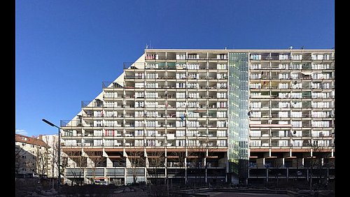 Der Großwohnkomplex Pallasseum in Berlin-Schöneberg wurde in den 1970er-Jahren errichtet und zählt mit mehr als 500 Wohnungen zu den größten zusammenhängenden Wohnanlagen der Stadt. Seit 2017 steht das Gebäude unter Denkmalschutz, wodurch klassische Sanierungsmaßnahmen der Gebäudehülle nur eingeschränkt möglich sind.