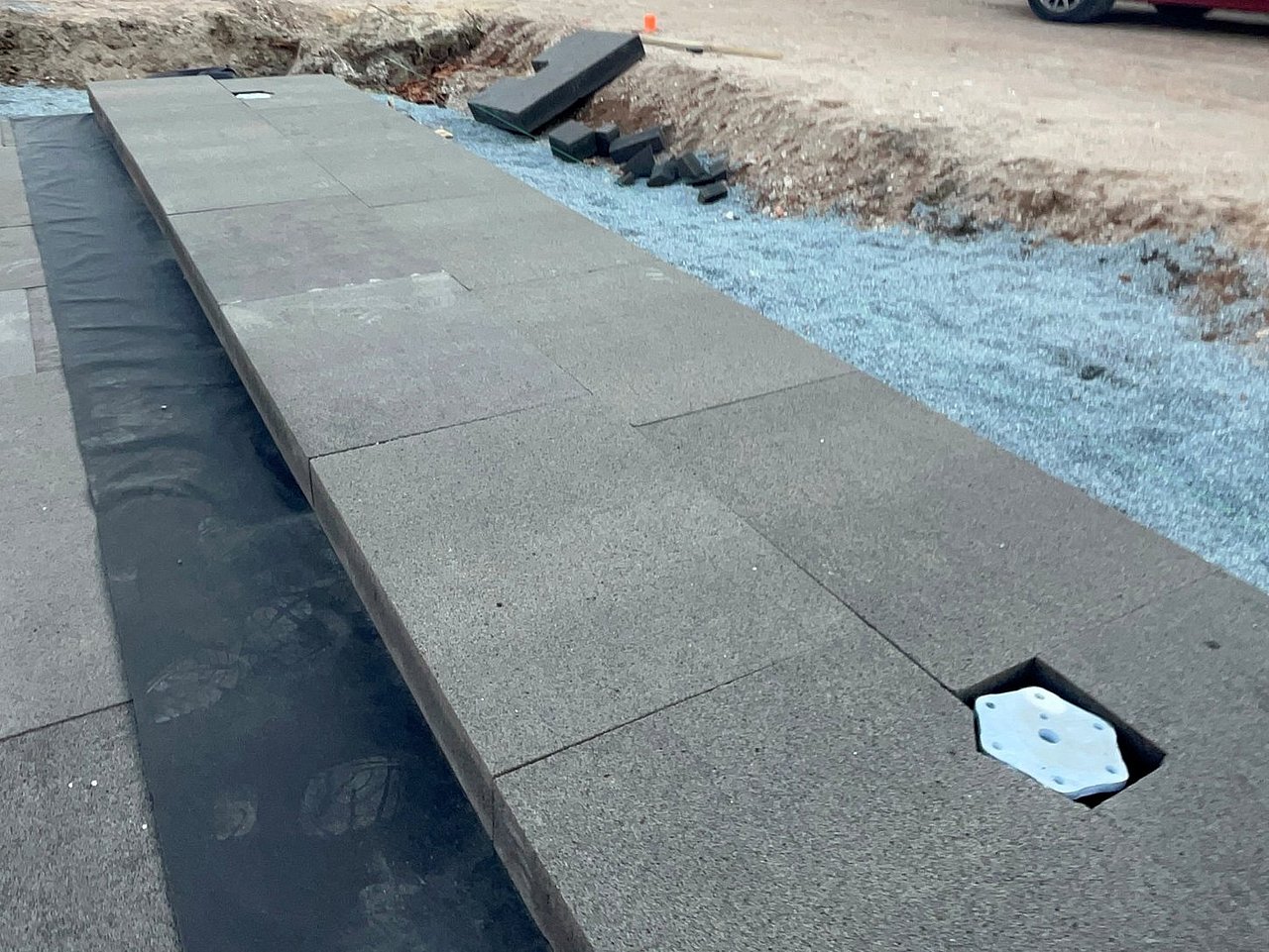 - Installation: Kann direkt auf ein Splittbett verlegt werden, was den Bauprozess vereinfacht und beschleunigt