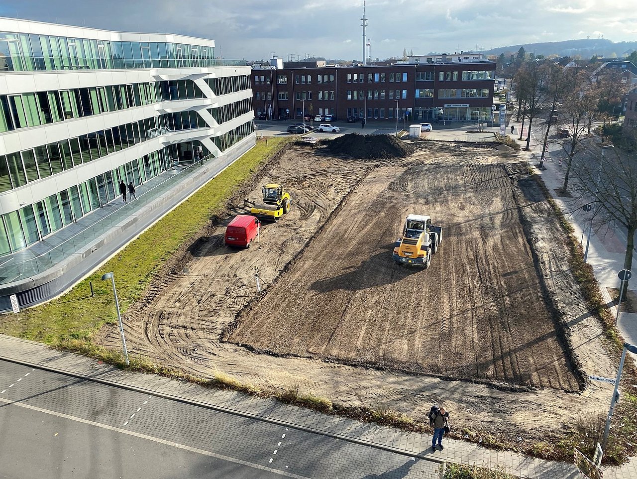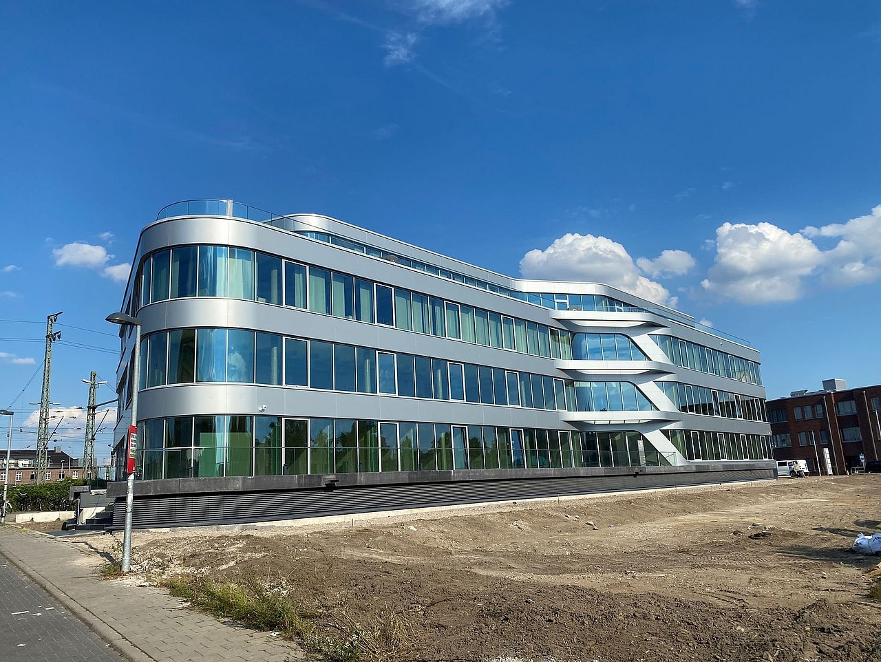 Das 2020 fertiggestellte „Environ“ im Innovationsquartier Rheine ist ein viergeschossiges Bürogebäude. Die Büroflächen verfügen über aktive Be- und Entlüftung, Strom wird zu 100 Prozent aus Grünstromverträgen und eigenen Photovoltaikanlagen bezogen. Geheizt beziehungsweise gekühlt werden die Räume mittels modernster Abwasser- und Erdwärmenutzung. Für die Abwasserwärmenutzung wurde ein 47 m langer Wärmetauscher in den Abwasserkanal unter dem Gebäude eingebaut, den Abwasser aus dem Stadtteil Dorenkamp speist. Der maßgefertigte Wärmetauscher besteht aus rund 50 ein bis zwei m langen doppelschaligen Druckbehältern aus Edelstahl, die von einem kühlen Wasser-Glykol-Gemisch als Trägermedium durchströmt werden. Als Ganzes sind die Module über eine Vor- und eine Rücklaufleitung mit der Wärmepumpe im Gebäude verbunden. Konkret schickt die Wärmepumpe das kühle Trägermedium in die Module des Wärmetauschers, über den im Anschluss das Abwasser fließt. Das Trägermedium bewegt sich von der einen auf die andere Seite durch die Module und nimmt dabei die Wärme, die Energie des Abwassers auf. Das erwärmte Trägermedium wird zurück zur Wärmepumpe geführt. Diese schraubt die nutzbare Energieleistung hoch und heizt Gebäude. Der so entstehende Kreislaufprozess wird im Sommer zur Klimatisierung mittels einer reversiblen Wärmepumpe umgekehrt. Das Gebäude wird dann über den Abwasserstrom gekühlt.
