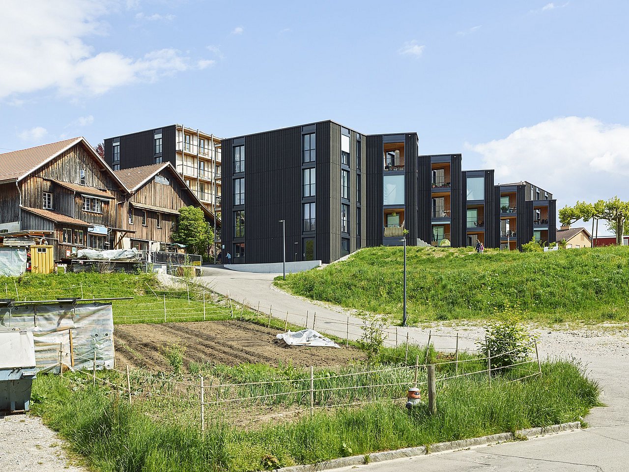 Als Ergänzung zu einem bestehenden Gewerbehaus entstand auf dem Areal einer privaten Bauherrenfamilie im Ortsteil Seen von Winterthur eine Wohnsiedlung mit 50 Wohneinheiten und einer Arztpraxis. Neben einer ökologischen, energie- und kosteneffizienten Bauweise legt das Wohnprojekt Wert auf die Förderung von Gemeinschaft, ausreichend Grün- und Außenraumbezug sowie eine bedarfsgerechte Anpassungsfähigkeit der Grundrisssituationen bei gleichzeitig nur niedrigem Pro-Kopf-Flächenverbrauch.